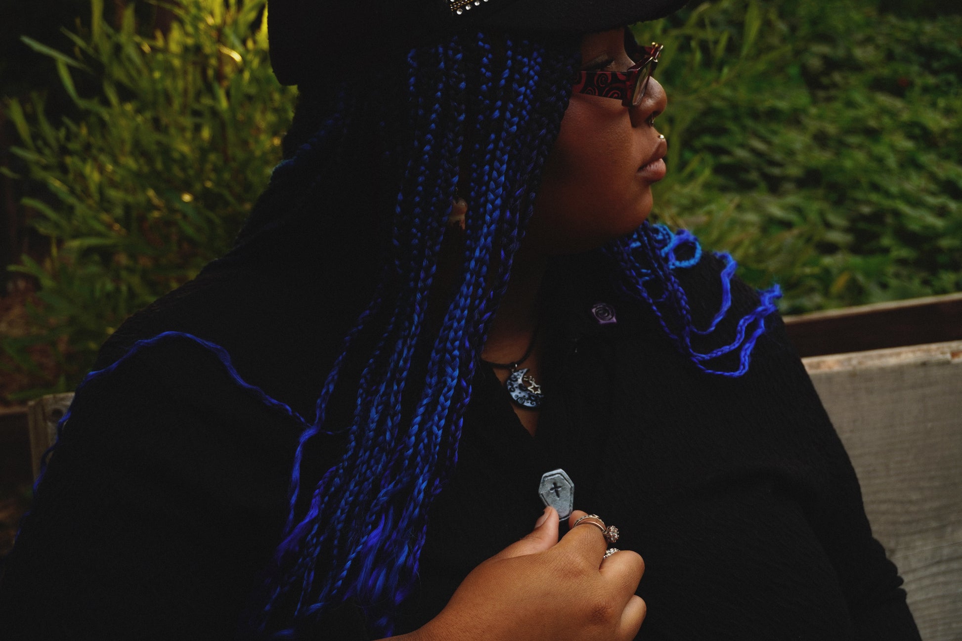 Metal button cover with 100% handmade polymer clay silver coffin pendant.