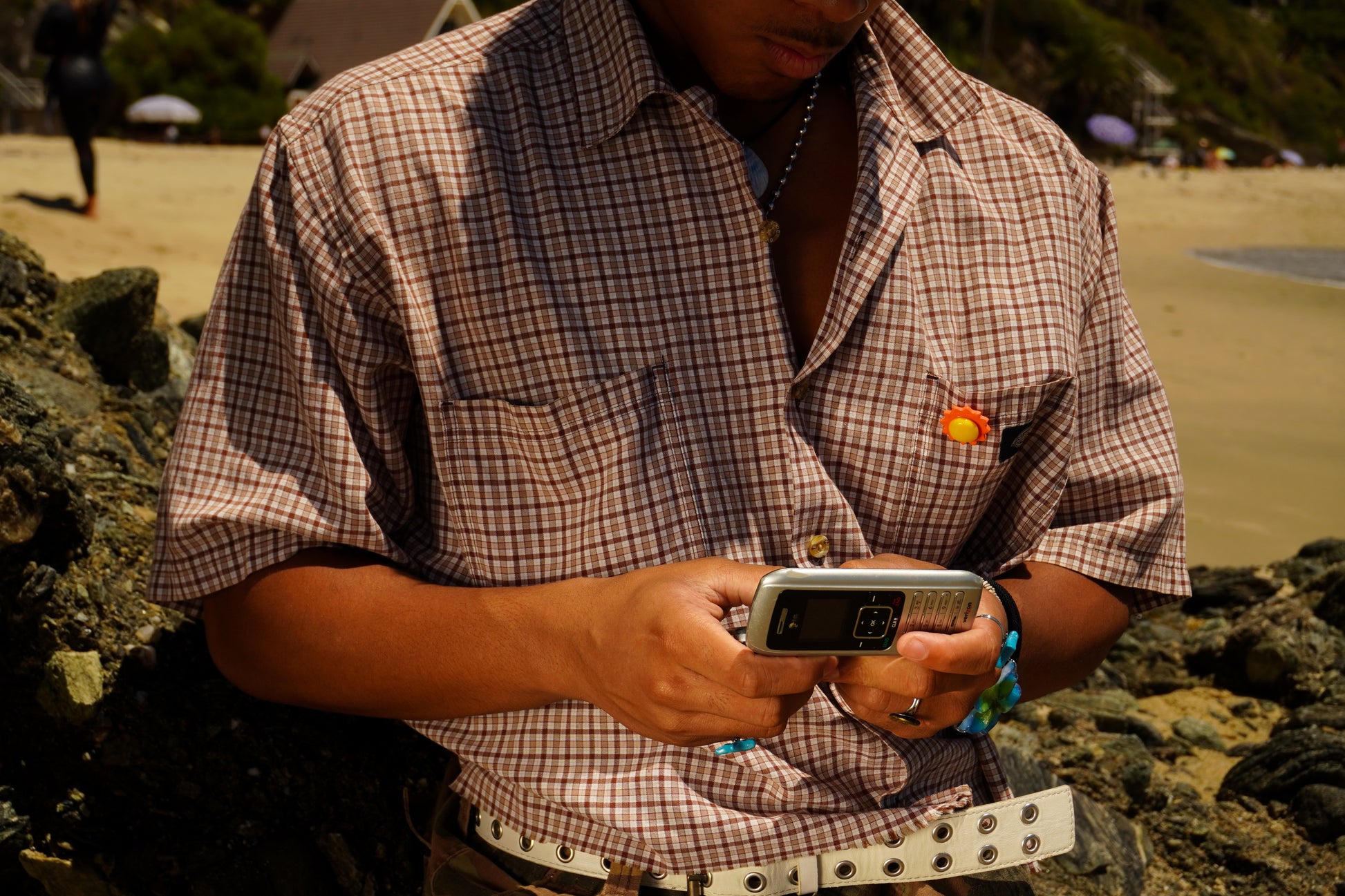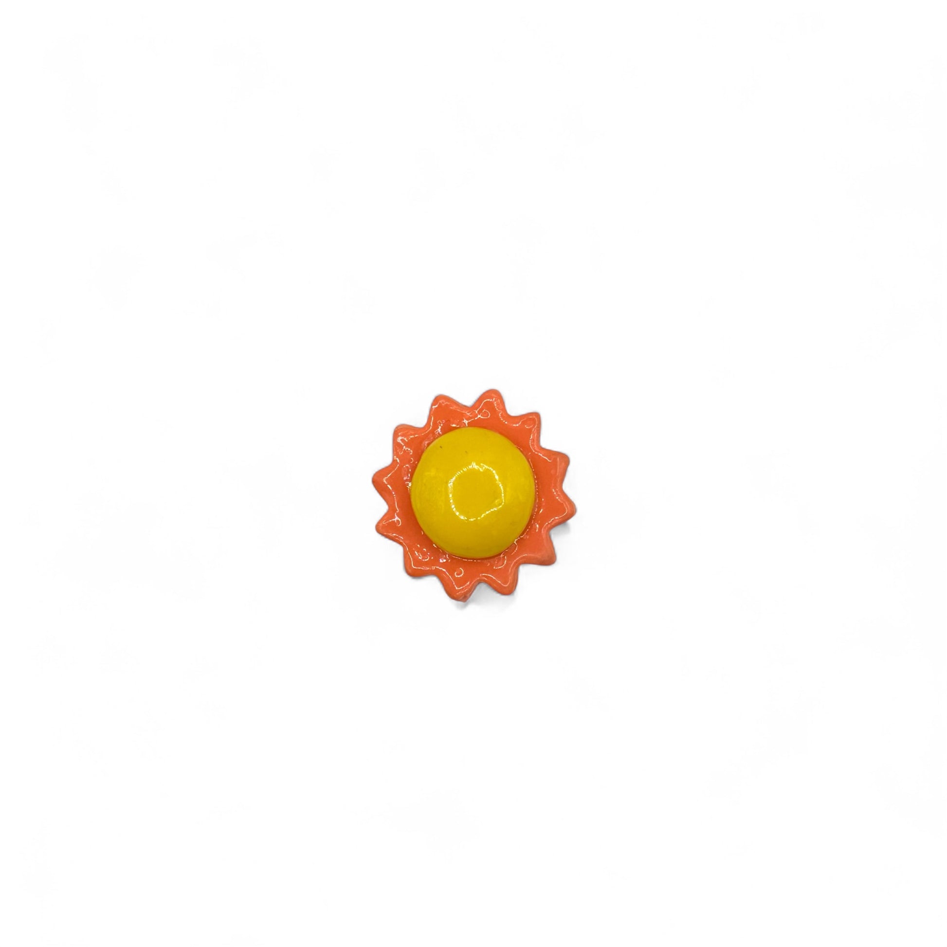 100% handmade polymer clay sun pin with metal clutch back. Wear it on clothing (as pictured) or on bags & hats.